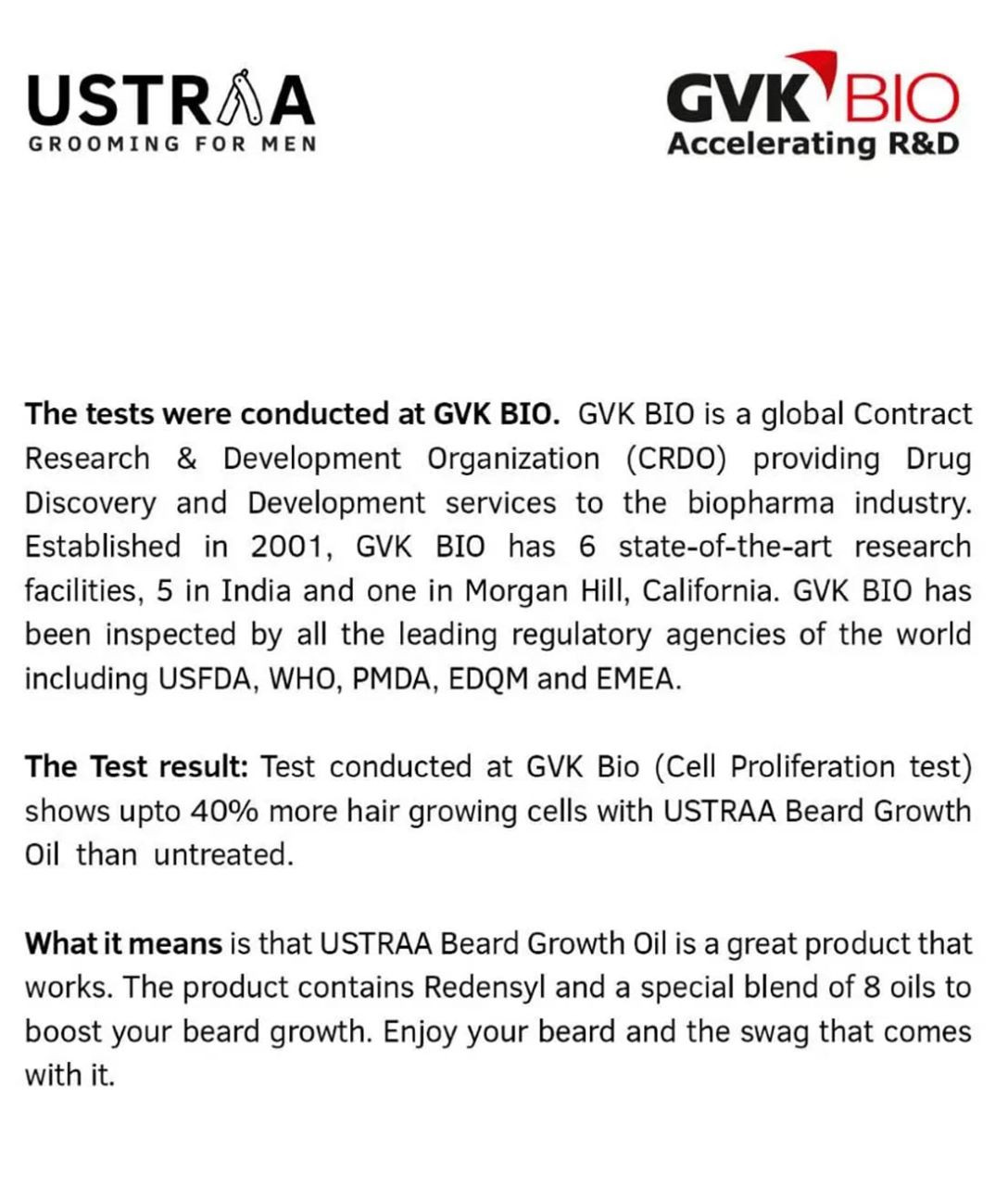 Beard Growth test conducted in an independent lab shows upto 40% more hair growing cells with the USTRAA Beard Growth Oil.