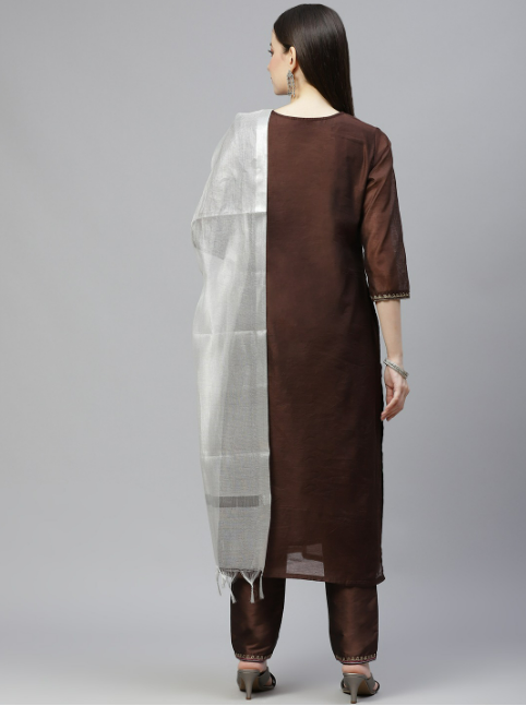 Coffee brown embroidered Kurta with Trousers & dupatta -