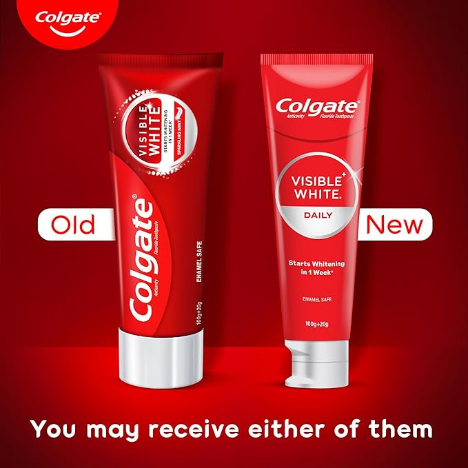 Colgate Visible White Toothpaste, Teeth Whitening Starts in 1 week, Safe on Enamel, Stain Removal Tooth Paste and Minty Flavour for Fresh Breath (200g + 40g, Combo Pack)