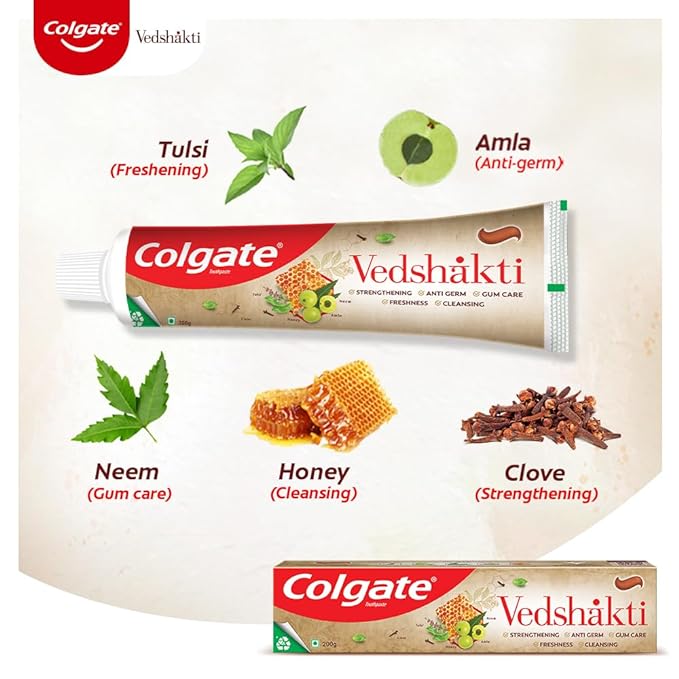 • Colgate Vedshakti fights germs in the mouth itself and stop germs from entering the body.