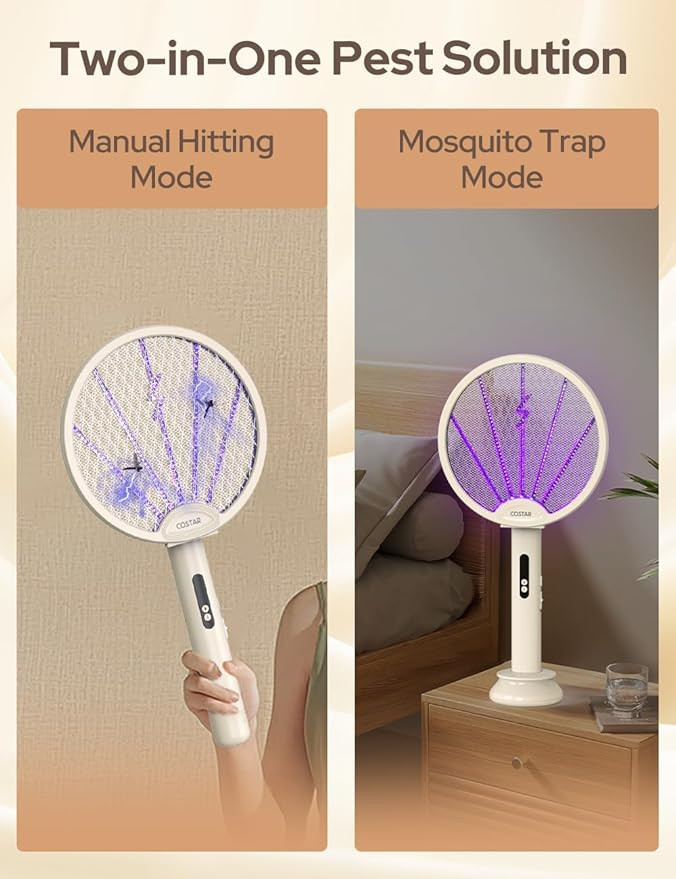 【2-in-1 Mosquito Killer Bat】: Unlike traditional mosquito devices, this mosquito killer features dual modes - manual mode for handheld mosquito swatting and lure mode for versatile use. Whether indoors or outdoors, this electric fly swatter is your companion for a mosquito-free experience in various settings.