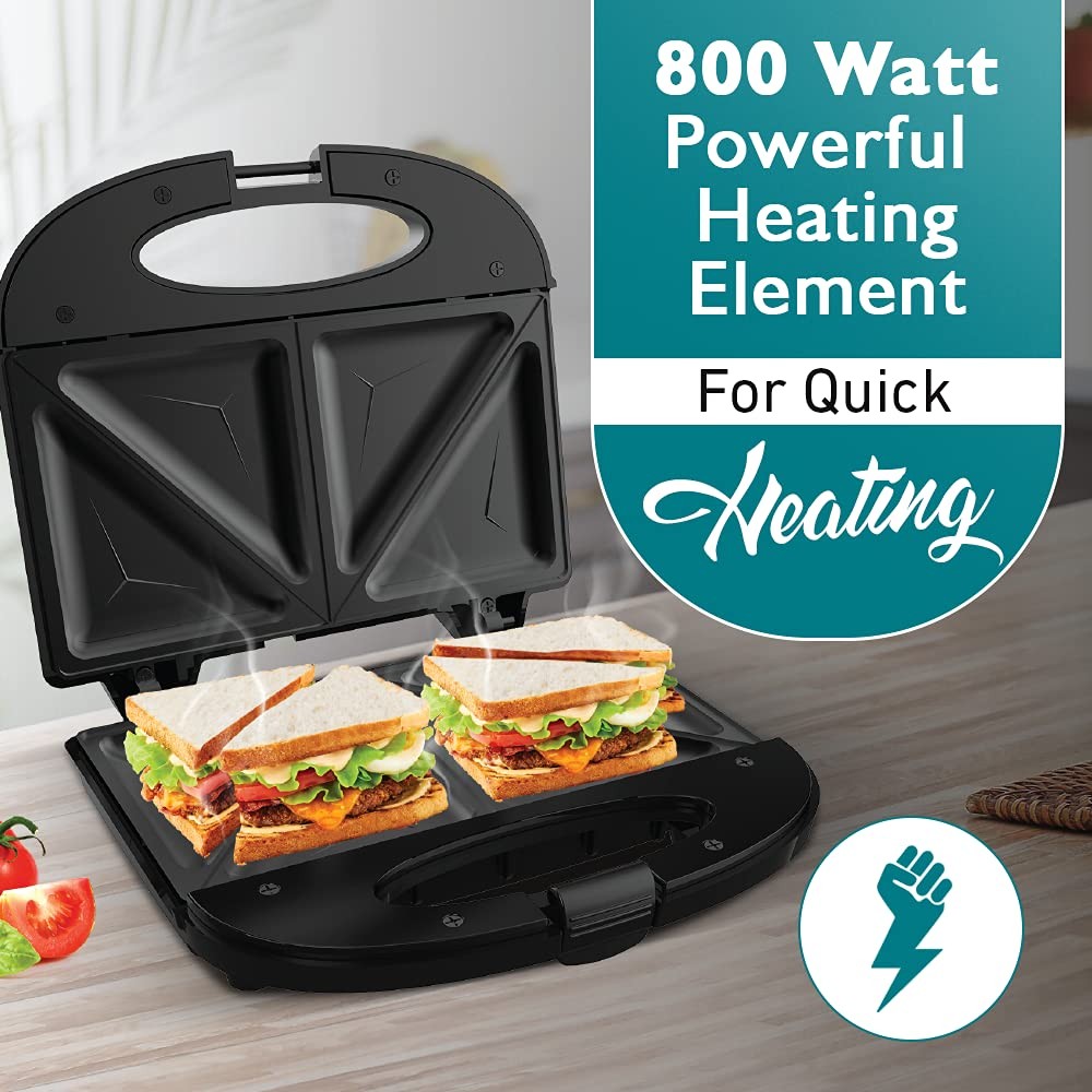 Crompton Instaserve Toast 800 Watts Sandwichmaker with Powerful Heating element (Black), Small