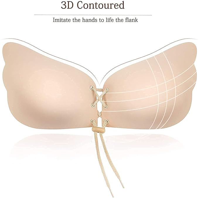 DClub Strapless Sticky Bra Invisible Backless Stick on Bra Push up Lift Bras for Women Dress Reusable Silicone Nipple Covers