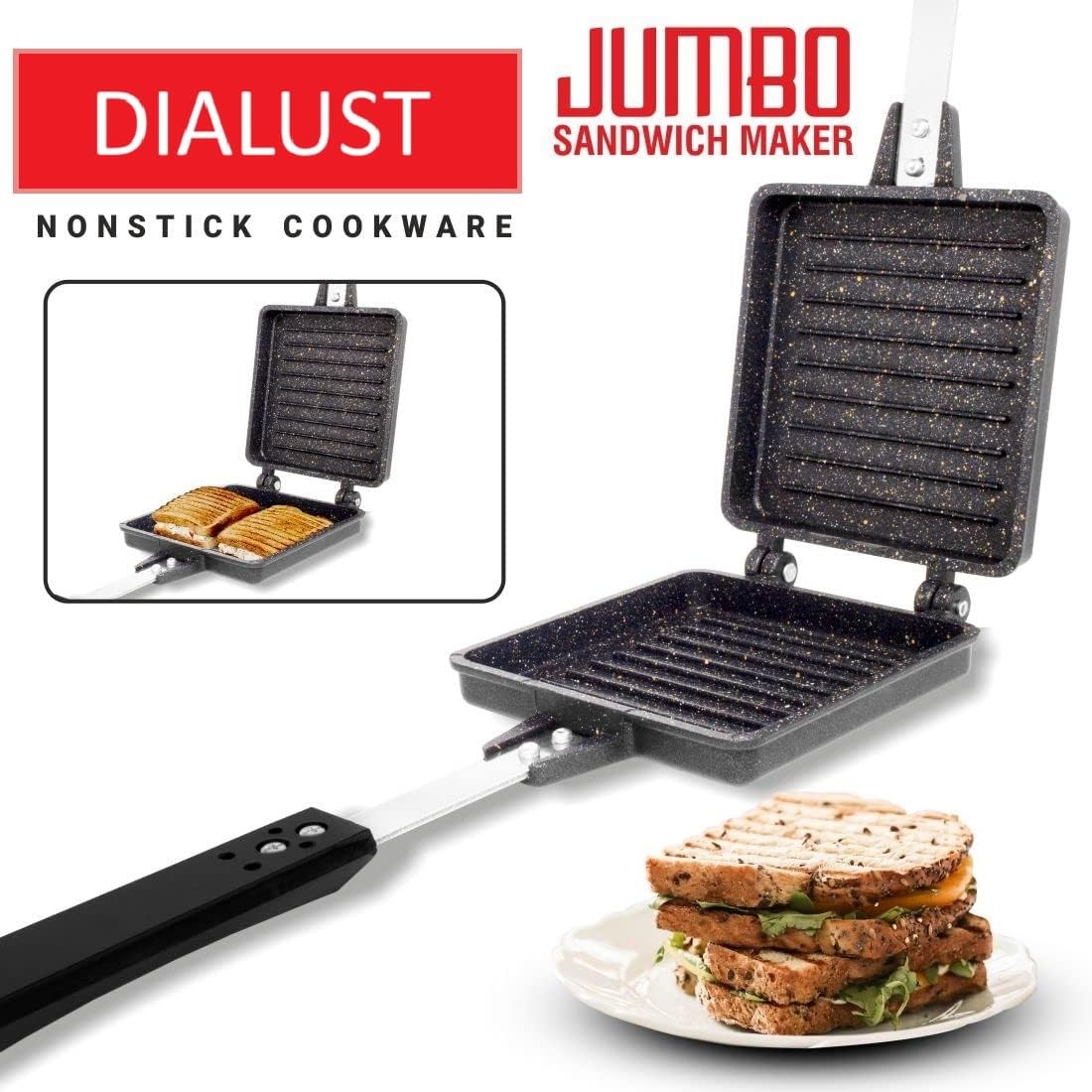 Dialust Non-stick Jumbo Grill Gas Toaster Premium Big Bread Toaster, Sandwich Maker Griller with bakelite Long Handles, Gas Stove Toaster(Aluminium, Black)