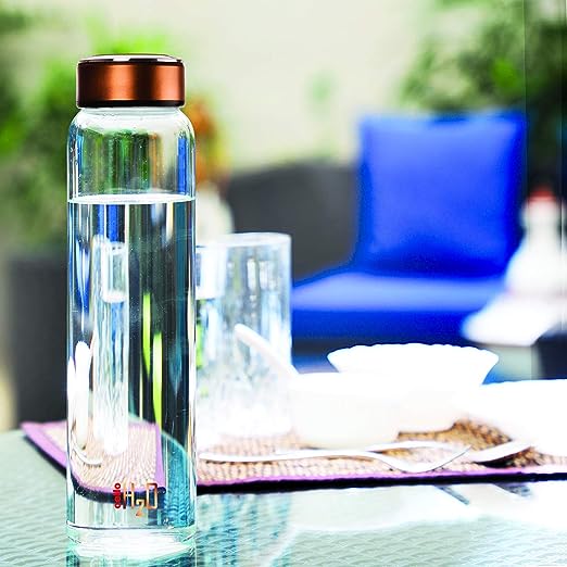 ELLCO H2O Borosilicate Glass Water Bottle (Clear, 1000 ml, Copper, Pack of 1 Bottle)