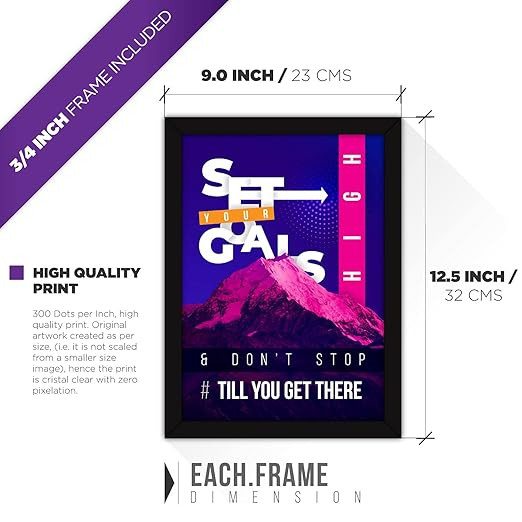 FATMUG Synthetic Framed Motivational Wall Posters With Glass (Set 7 Four A4, Multicolour) - Set Of 4