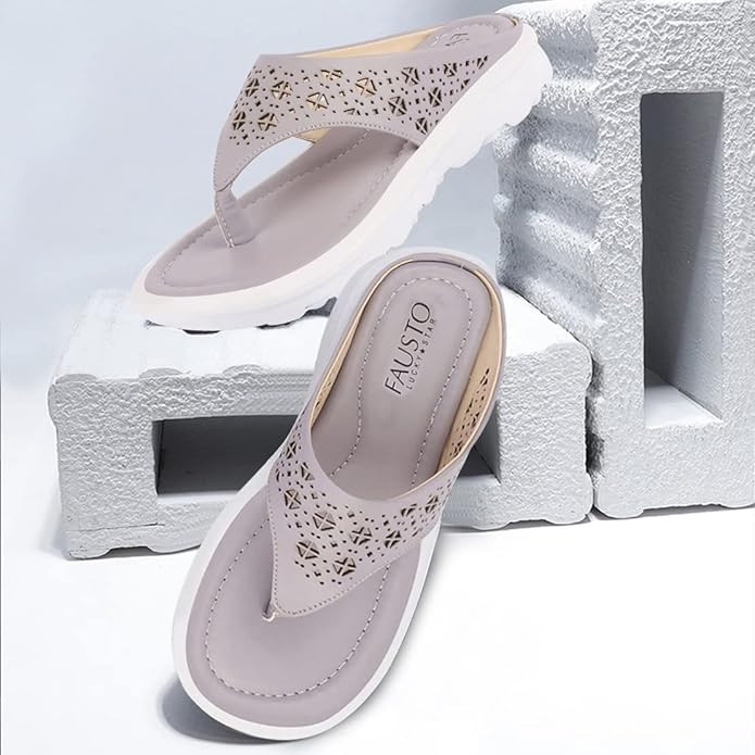 FAUSTO Women's Party Fashion Stylish Laser Cut Strap Thong Flats Wedges Slipper