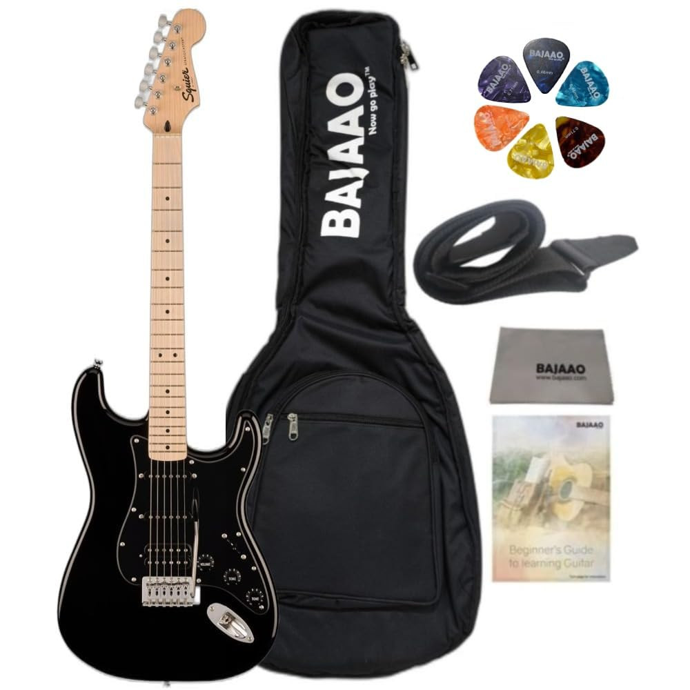 Fender Squier 6 String Solid-Body Electric Guitar with Gig-Bag, Polishing Cloth, Strap, Picks & E-Book - Black