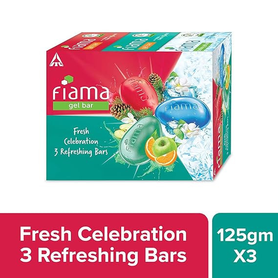 Fiama Gel Bathing Bar Fresh Celebration pack, with 3 unique gel bars, with skin conditioners for moisturized skin, 125g soap (Pack of 3)