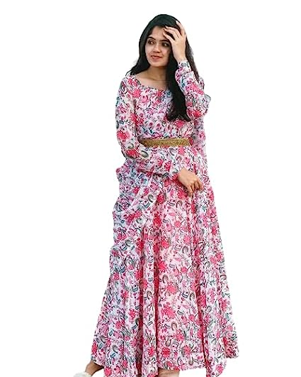 Floral Gown for Women Georgette Designer Gown Summer Casual Office Regular Wear Gown Tunic -