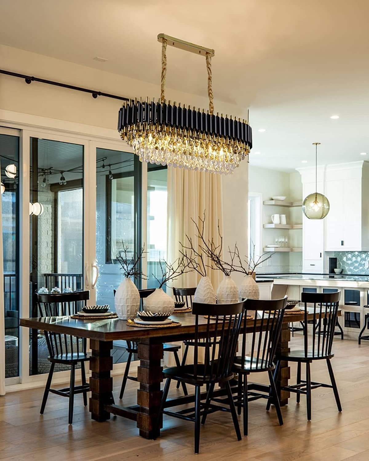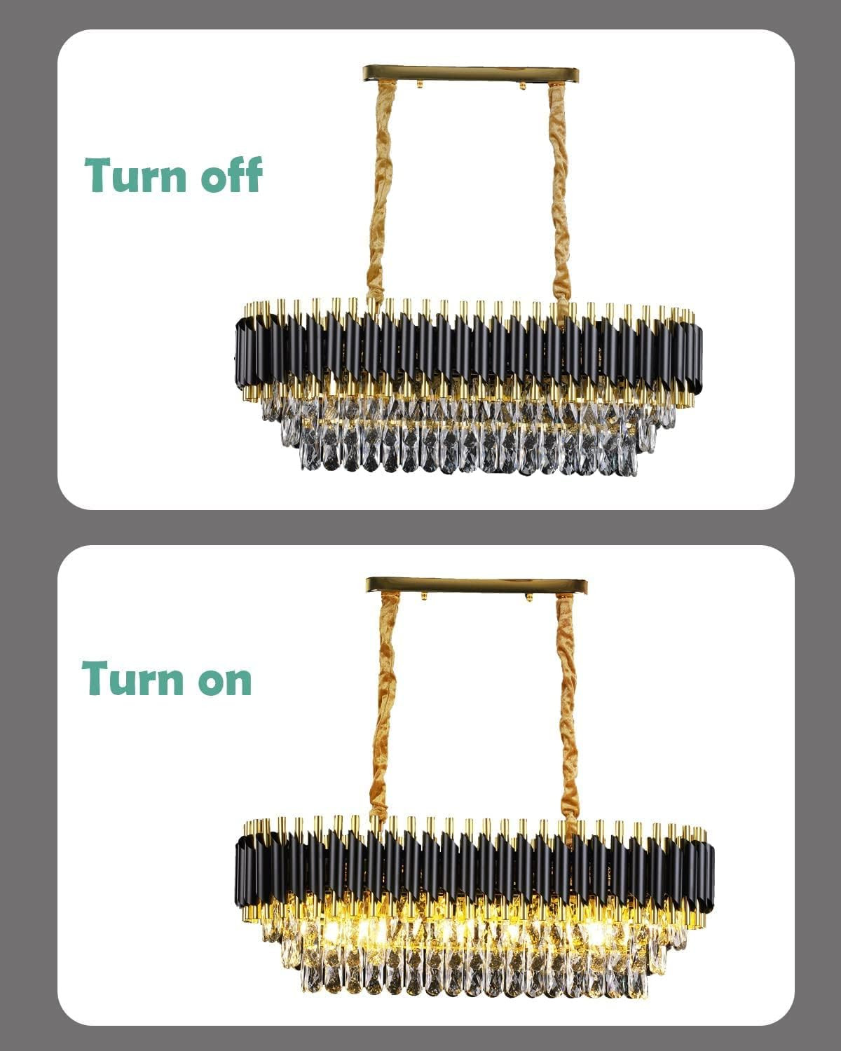 FLOSTON Modern Crystal Chandeliers Black Gold K9 Crystal 3 Tier Round Oval Crystal Chandelier Ceiling Light Fixture for Living Room and Hallway 600x300