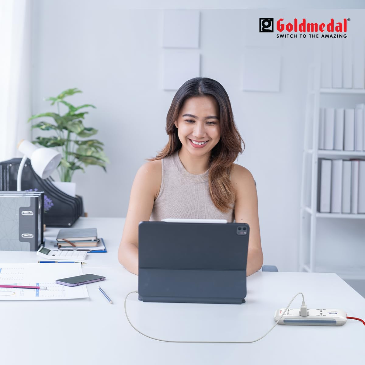 Goldmedal i-Strip LED High Grade Spike Guard (White and Red) – Pack of 1, 6 Outlet International Socket, master Switch, 3-pin 2 meter Cable, Indicator with Surge Protector for Home & Office
