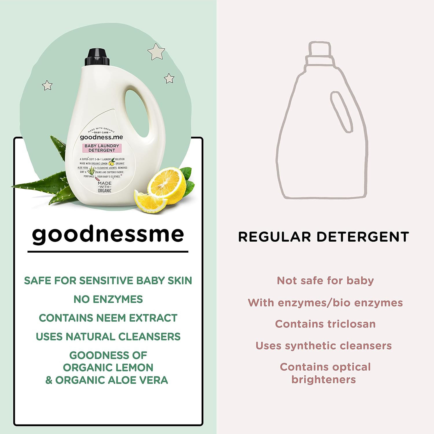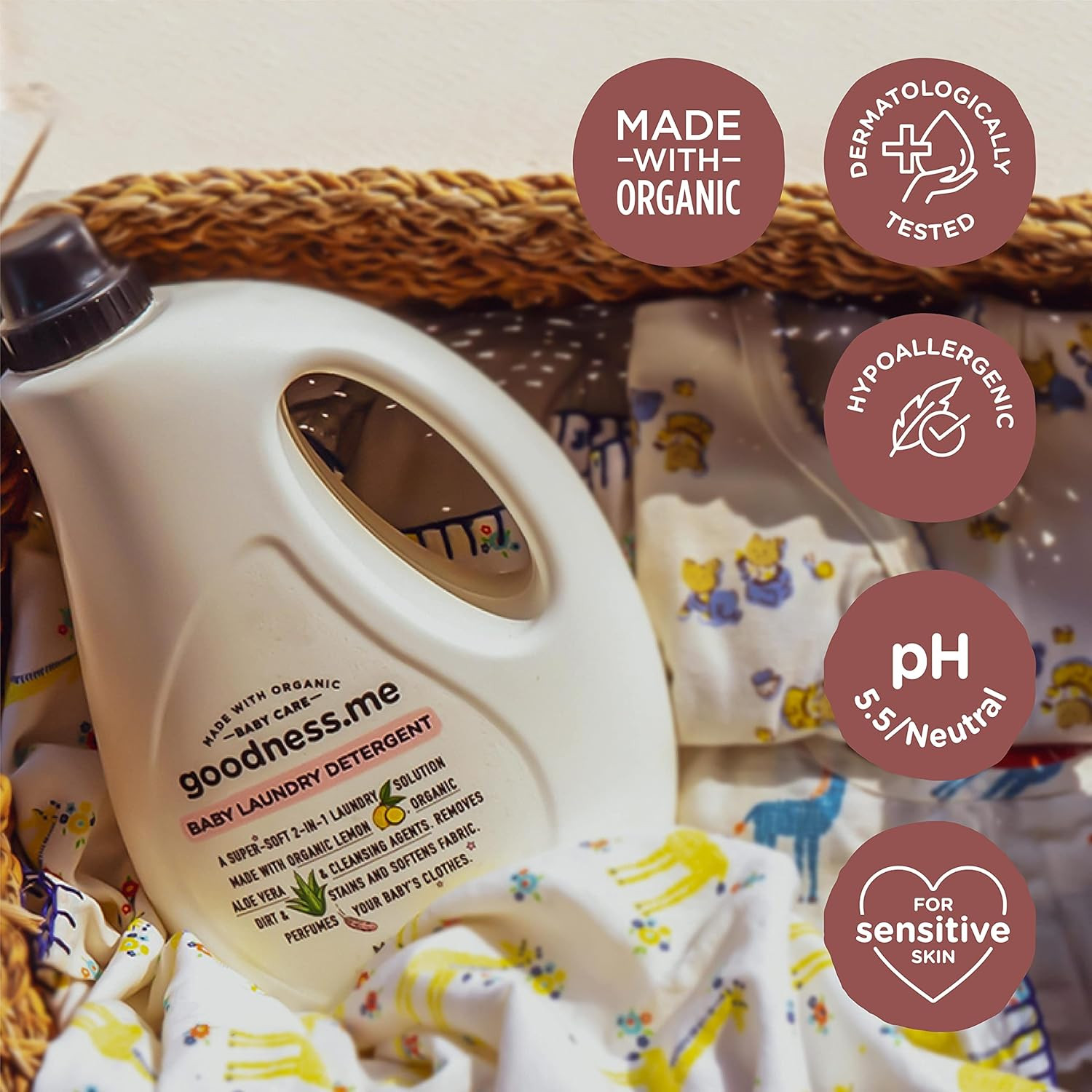 Introducing the Goodness.Me Baby Laundry Detergent, specially formulated for the delicate skin of your little ones. This gentle yet effective detergent combines the power of natural ingredients with a hypoallergenic formula, ensuring that your baby’s clothes remain soft, fresh, and free from harsh chemicals. With a soothing scent that will keep baby clothes smelling incredible, it provides a safe and nurturing clean that you can trust. Give your baby the best laundry care with Goodness.Me!