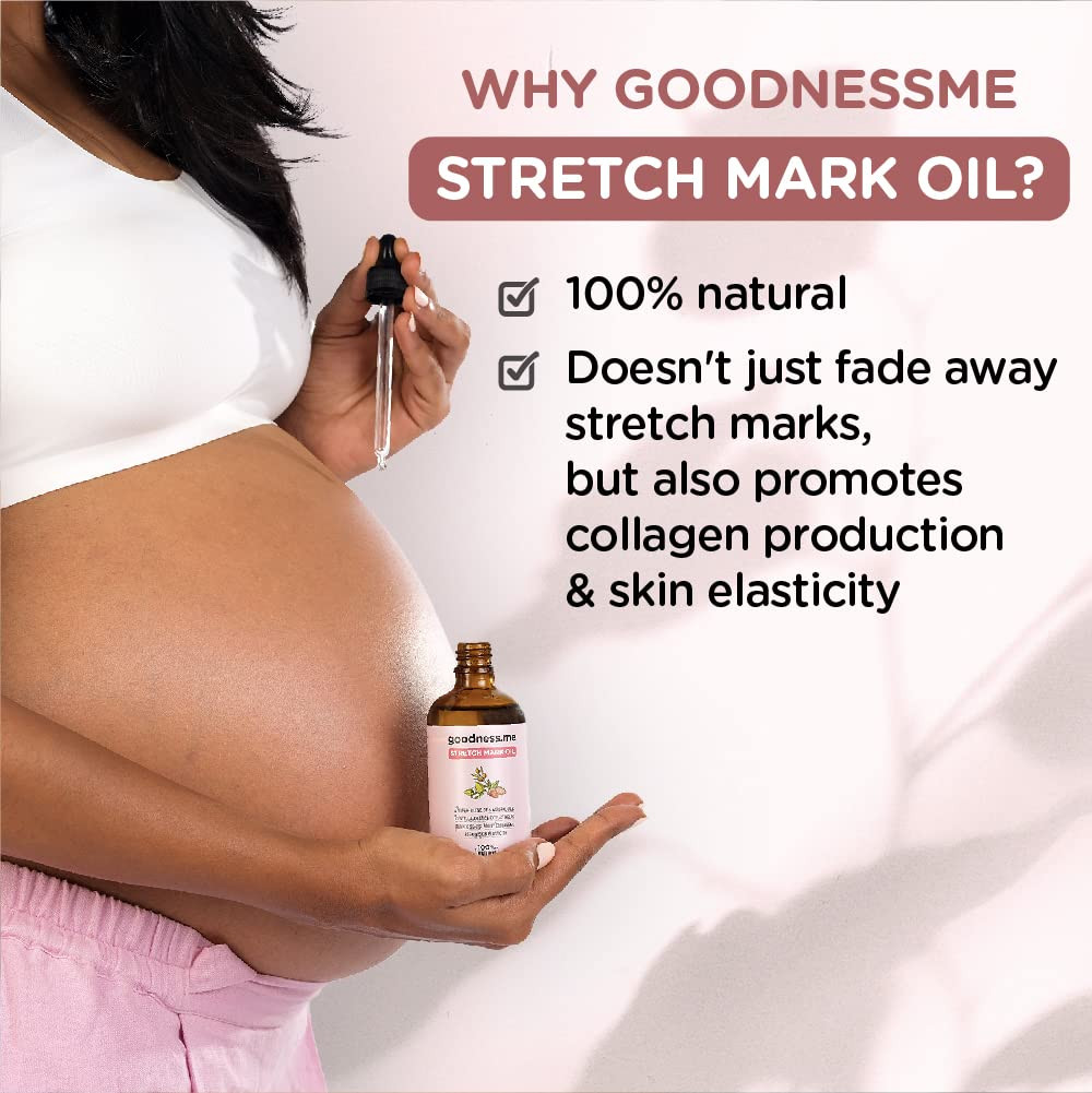GOODNESS.ME Stretchmark Oil, an indulgent blend that nourishes your skin while actively reducing the appearance of stretch marks. This luxurious oil is formulated with a careful selection of natural oils and vitamins that deeply hydrate and promote skin elasticity. Whether you're navigating the beautiful changes of pregnancy or simply seeking to maintain your skin's smoothness and bounce, our Stretchmark Oil is your perfect companion. Embrace your body's journey with confidence and grace, as this powerful oil helps to restore your skin's youthful appearance.