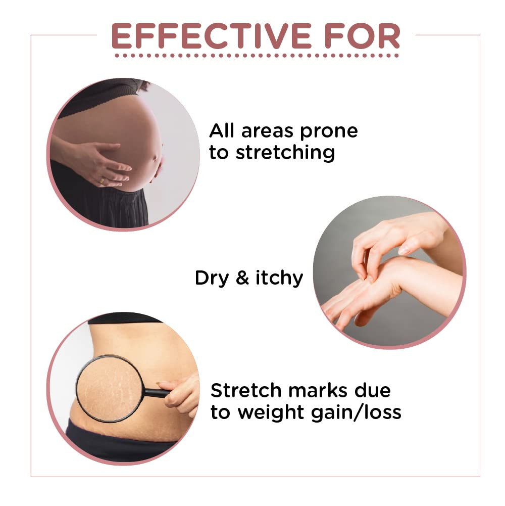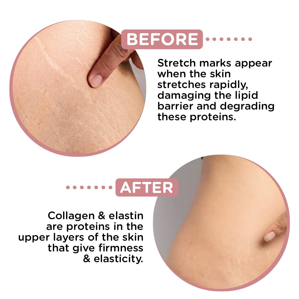 Promotes skin elasticity and reduces the appearance of stretch marks