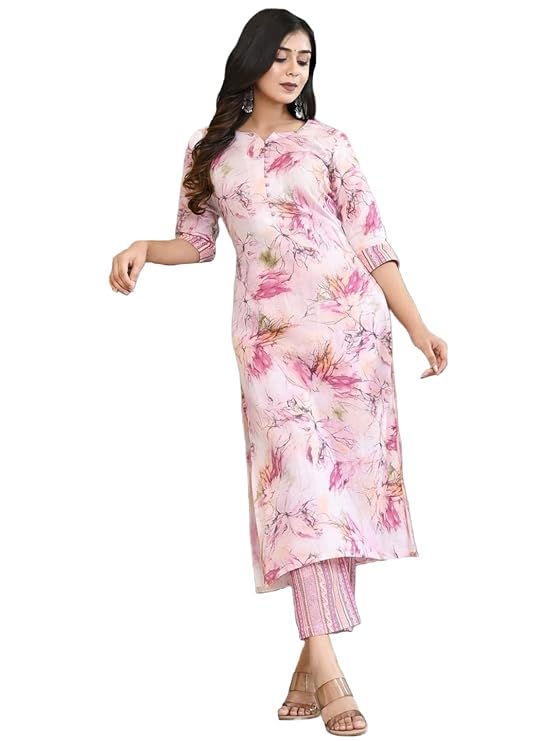 • This set includes: 1 Kurta with 1 Pant || Work : Printed || Neck Style:- Round V-Neck