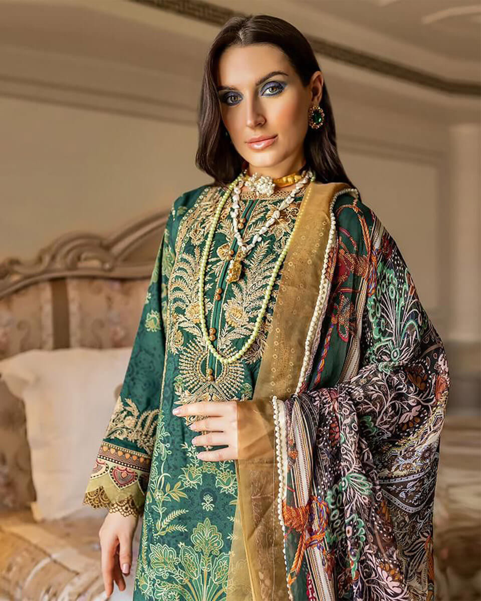 Green colour Unstitched Cotton Lawn Pakistani Salwar Suits