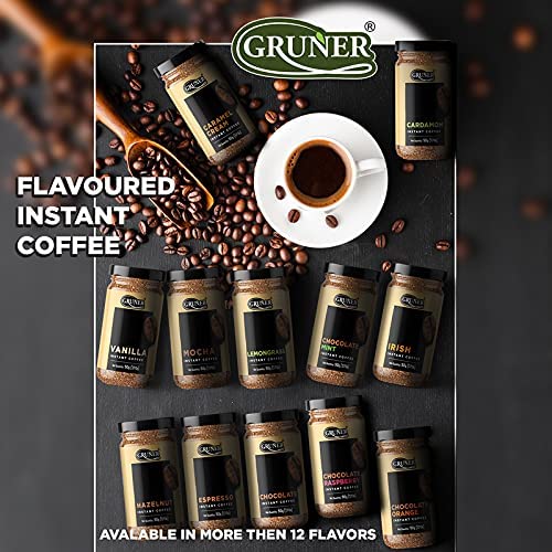 ABOUT GRUNER INSTANT COFFEE: Gruner instant coffee powder is a natural and healthy treat to coffee lovers which comes with more than 20 authentic flavours prepared with enhanced process to keep your every cup healthy and fresh and flavours give you the tastes of café like coffee at home, Coffee has a Rich Aroma with Bold and Fruity flavours & Gruner Coffee Offers Bold flavour with nutty & chocolatey notes