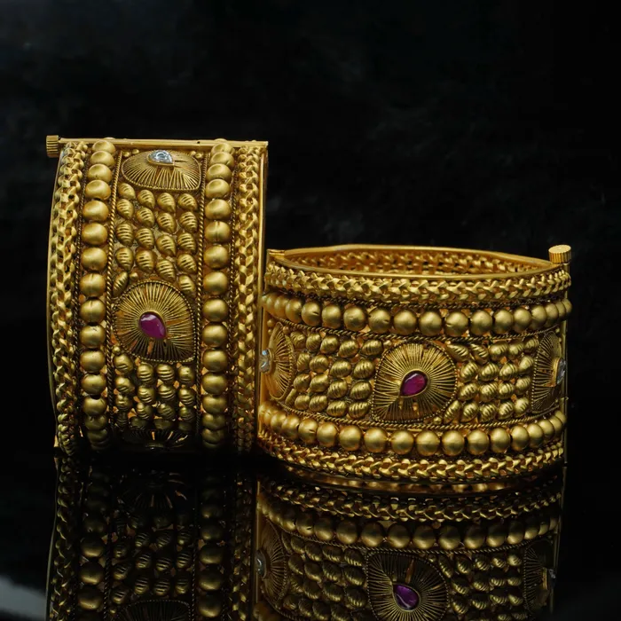 Handcrafted Traditional design copper bangle set -