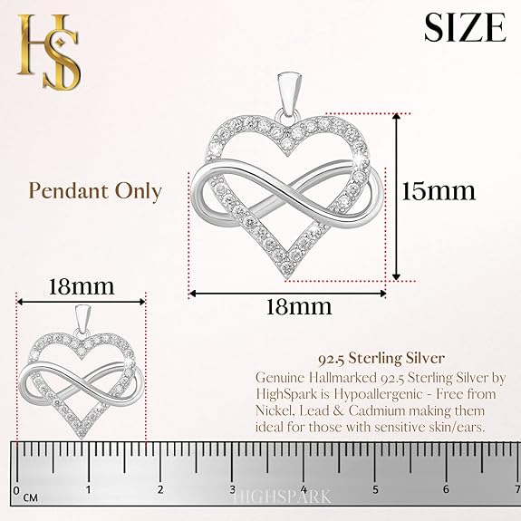 HighSpark Infinity Heart Pendant Necklace | 92.5 Sterling Silver & Stunning Shine | Infinity Heart Pendant Necklace Represents Everlasting Endless Love | Lovely Gift For Women & Girls
