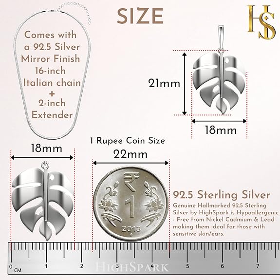 HighSpark Leaf Pendant Necklace for Women | 92.5 Sterling Silver & Stunning Shine | Lovely Gift