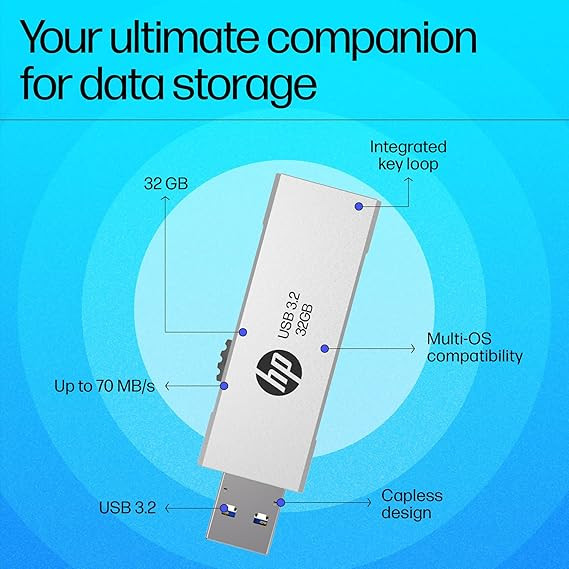 HP 818w 32GB USB 3.2 Flash Drive Silver Metal