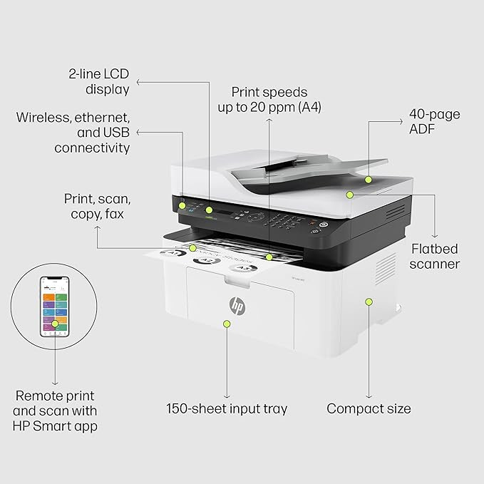 【Multifunction printer】This LaserJet printer features all-in-one - print, copy, scan, fax functions for versatile printing. Print clear monochrome documents and easily scan with a flatbed scanner.