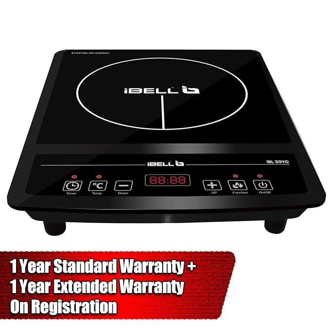 iBELL IBL30YO Induction Cooktop with Crystal Glass Top, 2000W, Auto Shut Off and Overheat Protection, BIS Certified (Black)