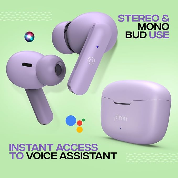 pTron Bassbuds Duo in-Ear Wireless Earbuds,TWS earbuds with Large 13mm Dynamic Driver to produce Immersive Stereo Sound & Deep Bass | Smart Touch controls & 32 Hours of non-stop Combined Playtime with the charging case