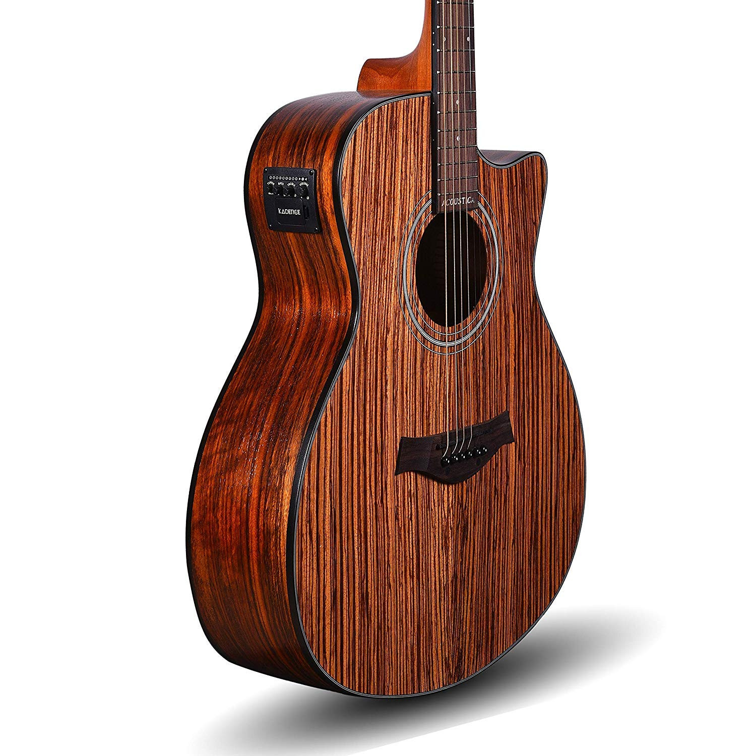 Kadence Guitar Acoustica Series A05, Electric Acoustic Guitar, Zebra Wood with Pickup, Inbuilt tuner and Bag (Zebra Wood, Electro Acoustic)