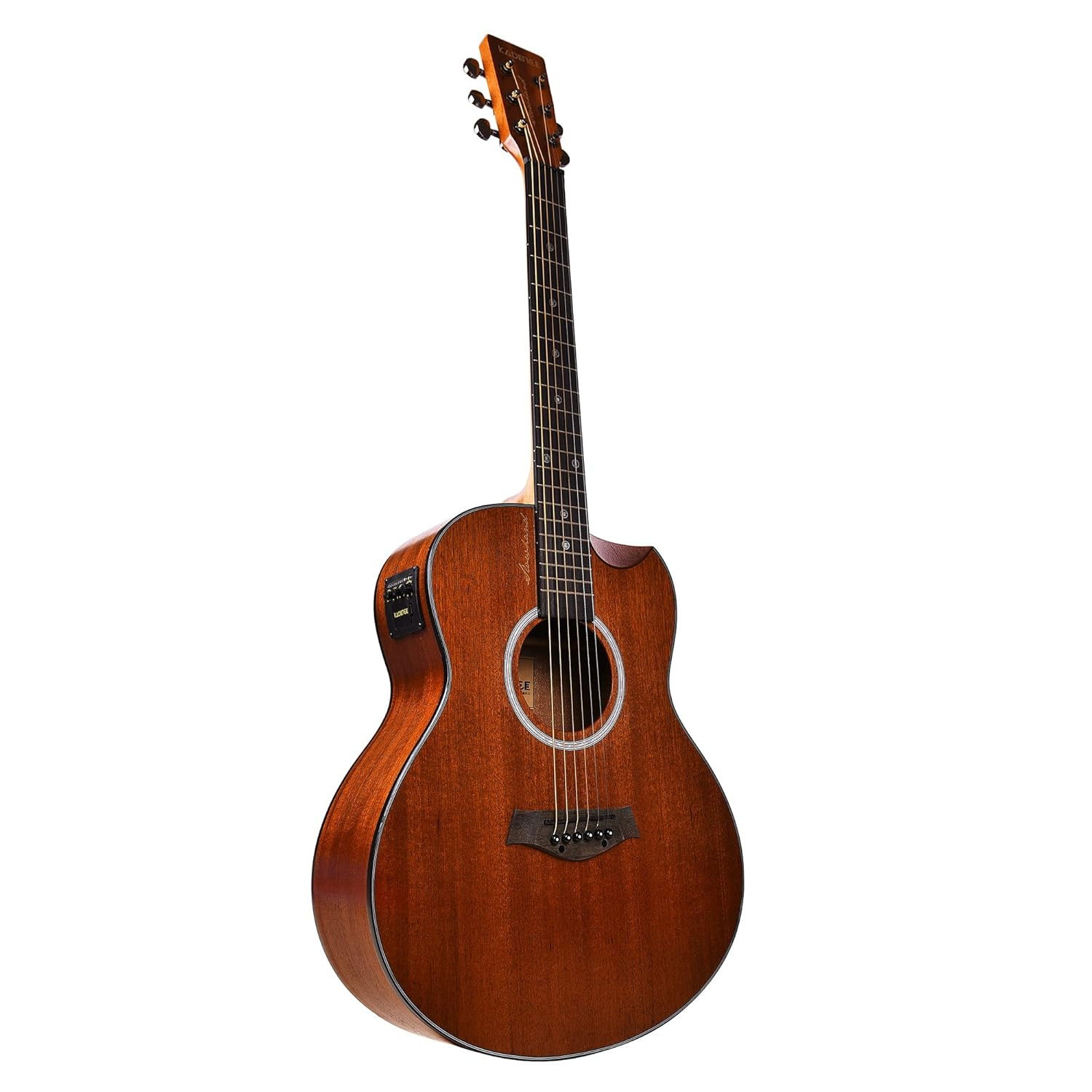 • BODY SHAPE: Demi-Cutaway, Type: Semi Acoustic, Equalizer: Pickup with Tuner, Top: Mahogany, Back: Mahogany,Bridge: Rosewood,Fret Board: Indian Rosewood,Finish: Natural,Adjustable Truss Rod