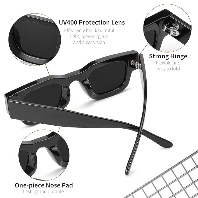 Karsaer Small Rectangle Polarized Sunglasses for Women Men Fashion Narrow Shades UV400 Protection Lens E1107