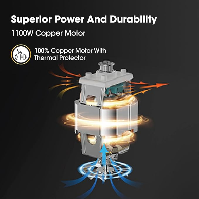 300W Powerful Performance: Mix, blend and whip ingredients in just a few minutes, thanks to its powerful 300W copper motor.