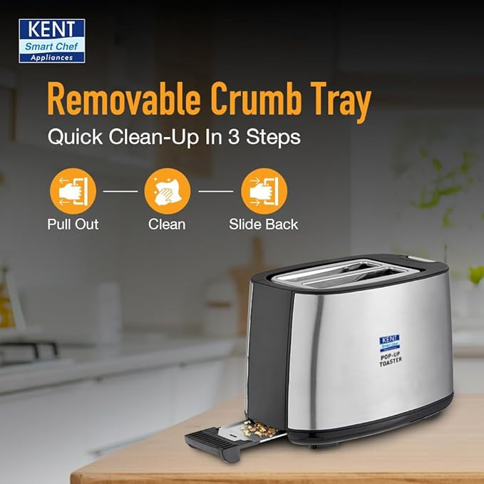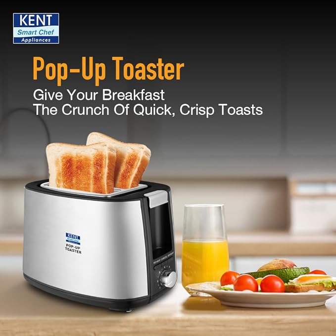 Kent 16105 Crisp Pop Up Toaster 750 Watts | 2 Slice Automatic Pop Up Electric Toaster | 6 Heating Modes | Auto Shut Off | Removable Bread Crumbs Tray | White