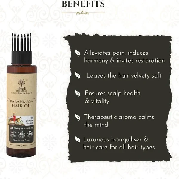 Introducing KHADI – BARAHMASA HAIR OIL, a magical blend designed to revitalize and nourish your hair throughout the seasons. Crafted with traditional Ayurvedic wisdom, this hair oil is enriched with a diverse mix of natural herbs that promote hair growth, strength, and shine. Whether you’re battling dryness, hair fall, or lacklustre locks, KHADI BARAHMASA will transform your hair care routine into a rejuvenating ritual. Embrace the power of nature for healthier, shinier hair that truly reflects your inner glow!