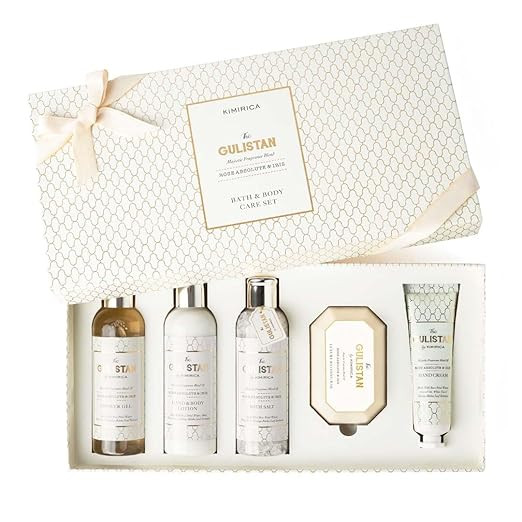 REASONS TO LOVE: Majestic fragrance of Rose Absolute and Iris | Luxurious, all-encompassing royal bath essentials | Infused with Organic Rose Water, Ginkgo Biloba & White Tea Extracts | An elegant gift ideal for all occasions Thoughtfully curated for all skin types | 100% vegan