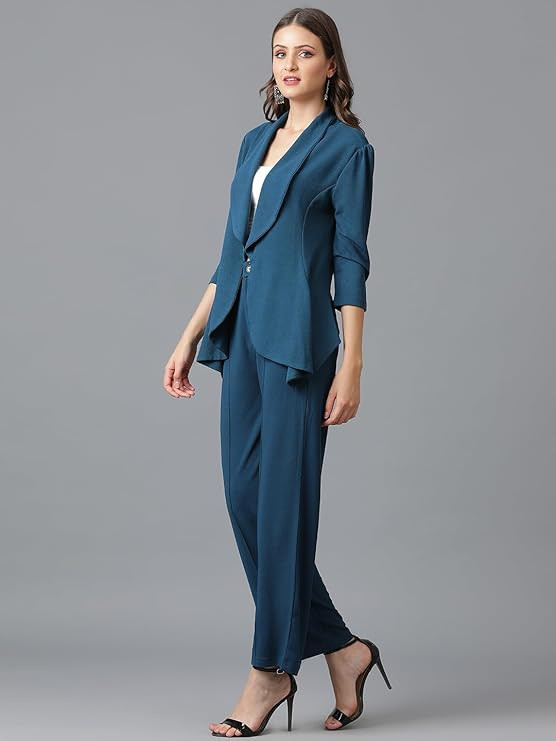 KOTTY Women's Solid Relaxed Fit 3/4 Sleeve Co-ord Blazer and Trouser Set. -