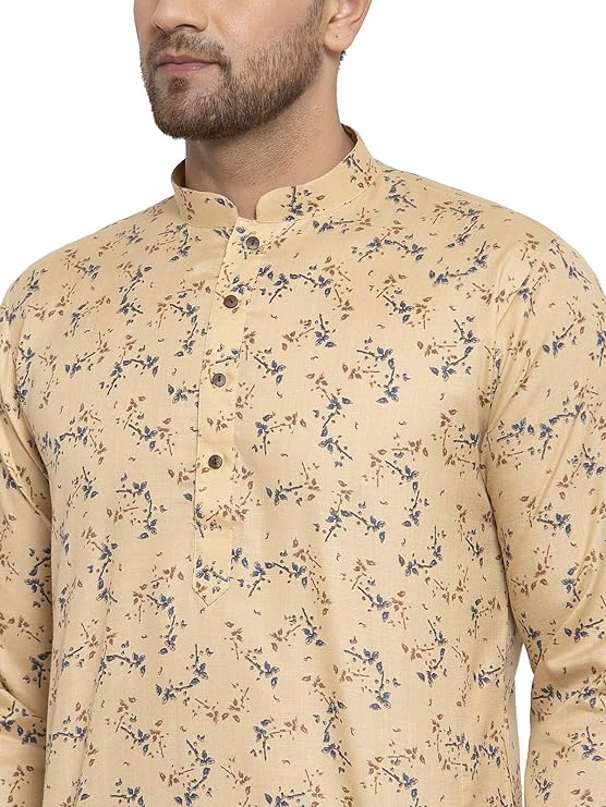 The kurta is made from smooth cotton fabric with mandarin collar and an idyllic floral print. The kurta is soft and lightweight and the designs feature modern and innovative details that appeal to everyone.