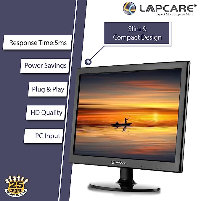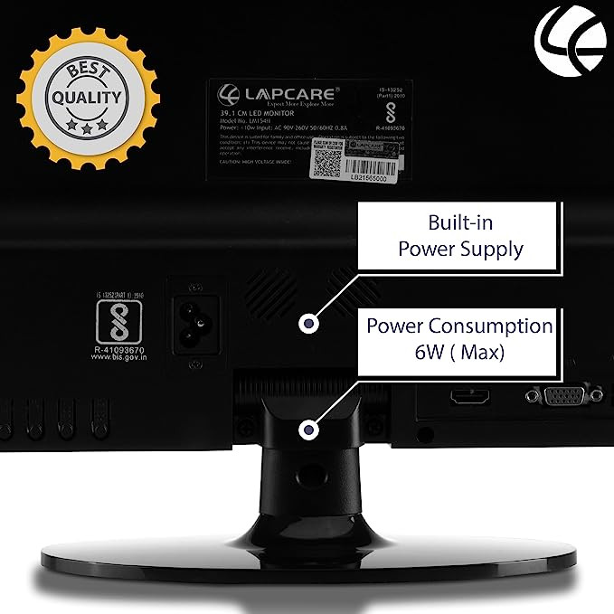 The Lapcare 15.4" Slim 720p HD LED monitor (VGA + HDMI) is an ideal device to experience visuals. This monitor has a better contrast ratio and effective resolution that brings more depth to visuals and ensures vivid color display. This Lapcare monitor has a 15.4" (39.1Cm) screen that ensures effective clarity. It is equipped with an ergonomic structure that facilitates ease of access. It comes with a base stand that provides stability. This firm stand makes it easy to keep the monitor on a desk or table. Included components in box : monitor; power cable; VGA cable; user manual. Lapcare LED monitor comes with 1 year standard warranty.