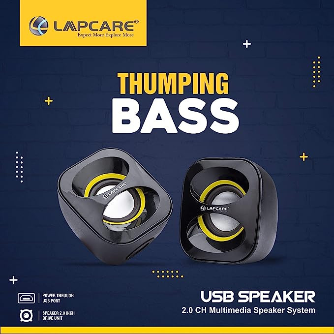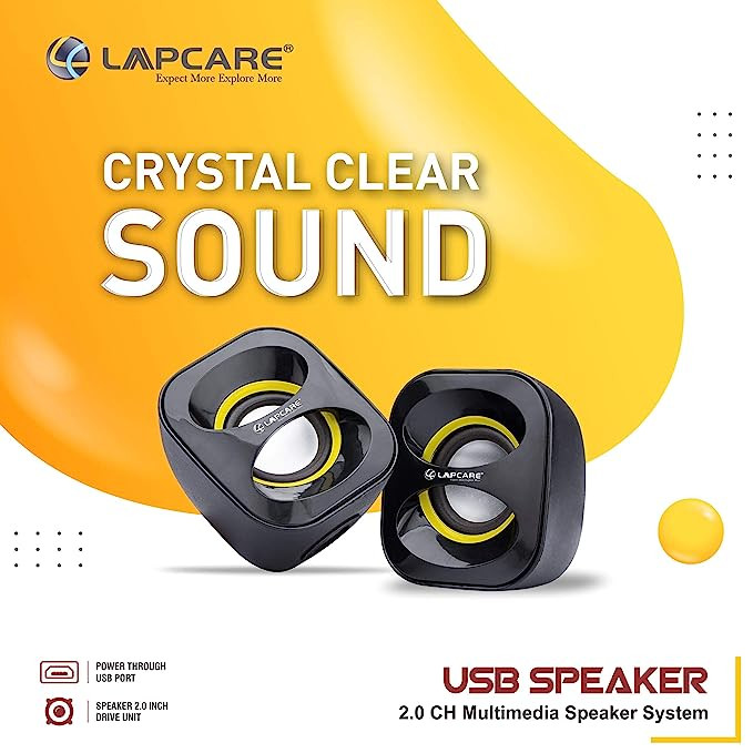 Lapcare LUS-040 3 Watt 2.0 Channel USB Multimedia Speaker (Yellow, Black)