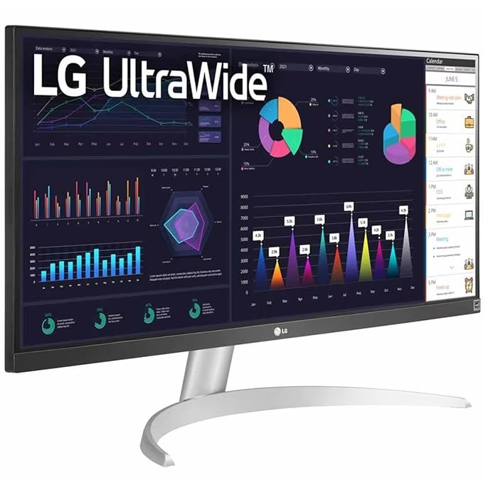 LG UltraWide 29 inch (73 cm) IPS FHD, 2560x1080 Pixels, Color Calibrated, 100Hz, 7W x 2 Inbuilt Speaker, USB-C, Display Port, HDMI, White Color-29WQ600