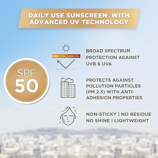 Sunscreen made with a powerful combination of SPF 50+ PA++++ broad-spectrum, Protects against UVA, UVB and Long-Range UV