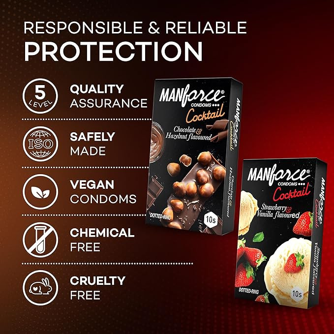 Manforce Cocktail Combo Pack - Strawberry & Vanilla and Chocolate & Hazelnut Extra Dotted Condoms | 20 pcs | India’s No. 1* Condom Brand for Safe Sex