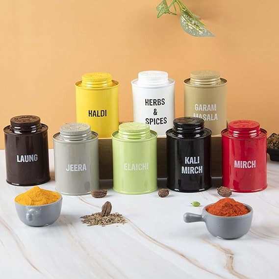 MARKET 99 Spice Jar 8 Pcs Set Metal Storage Box Container BPA Free Condiment Shape Spice Container Masala Rack Air Tight Kitchen Organizer 250 Ml