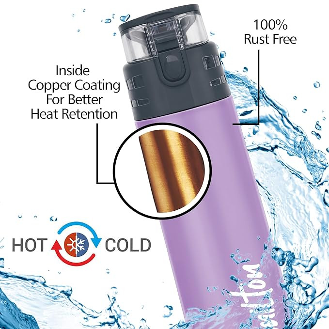 Inner copper coating for better temperature retention. Vacuum insulated technology keeps beverages hot or cold for hours.