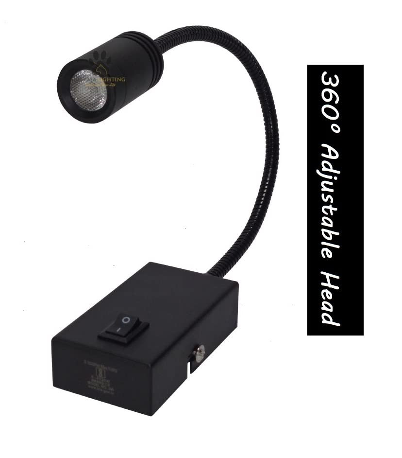 Mufasa Aluminium 3 Watts Black Finish Led Bedside Wall Light Surface Mounted Spotlight Reading Light Night Lamp Long Arm 28Cm Gooseneck (Pack of 1) (Warm White)