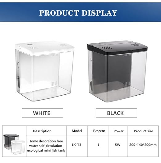 Package Contents: You will receive 3 Litre Fish Tank with Dimension 20x14x20 cm. Including Accessories are LED Light, Filter Sponge and Ultra Quit Pump. Please not Decorative Items is not available