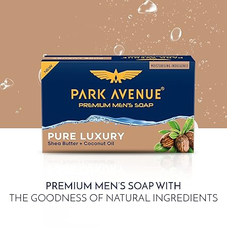 Park Avenue Premium Men’s Soaps for Bath – Pure Luxury | 125g (Pack of 4) | Enriched with Shea Butter & Coconut Oil | Grade 1 Soap | For All Skin Types