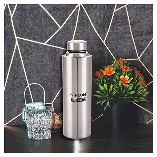 NIRLON Stainless Steel Fridge Water Bottle/Refrigerator Bottle/Single Wall/Leakproof, Silver, 1000 ml, Pack of 3 (FB Eco)