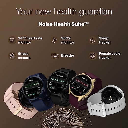 • Noise Health SuiteTM: Take better care of your daily health with a series of health monitoring tools – Blood oxygen monitor, Sleep monitor, 24x7 heart rate monitor, Stress measurement, Breathe practice & Female cycle tracker.